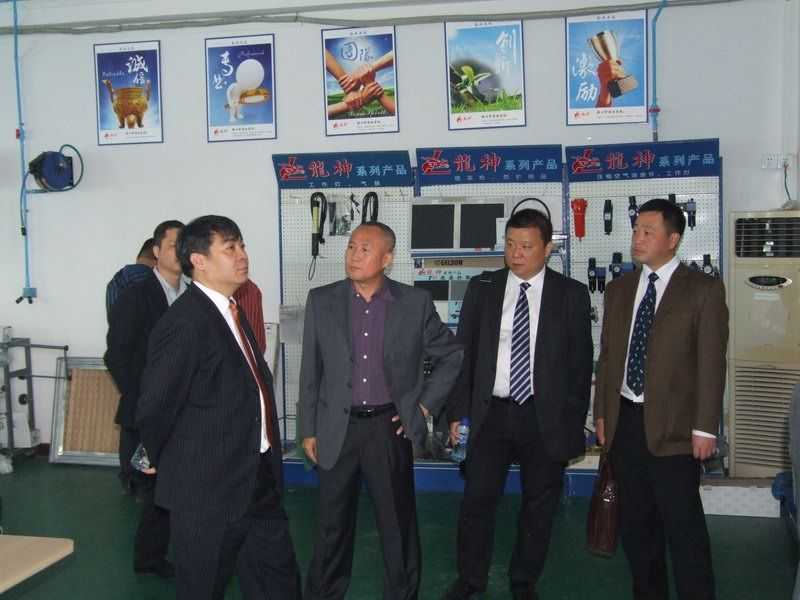 參觀生產(chǎn)部 (右一 龍神彭副總 右三 劉杰處長 左三 龍神彭總 左一 龍神蘇副總)領(lǐng)導(dǎo)合影