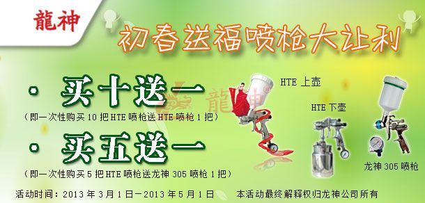 吉尼斯HTE噴槍“初春送?!贝黉N活動方案